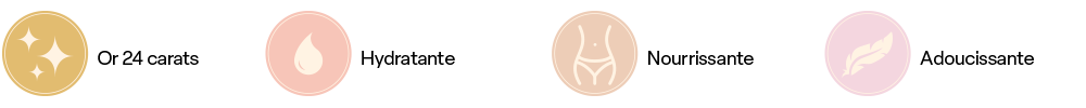 vergetures et de cellulite. L’or 24 carats aide à ralentir le vieillissement de la peau et favorise la